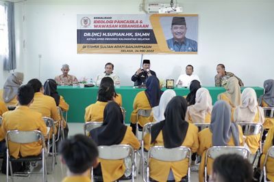 Banjarmasin, BARITO – Ketua DPRD Provinsi Kalimantan Selatan Dr (HC) H Supian HK, SH, MH mengimbau mahasiswa/mahasiswi Sekolah Tinggi Ilmu Hukum Sultan Adam (STIHSA) Banjarmasin selaku generasi muda mengenai pentingnya pemahaman tentang Ideologi Pancasila dan Wawasan Kebangsaan untuk menghayati kembali ideologi Pancasila yang hampir tergilas zaman serta menghindari perpecahan bangsa.
