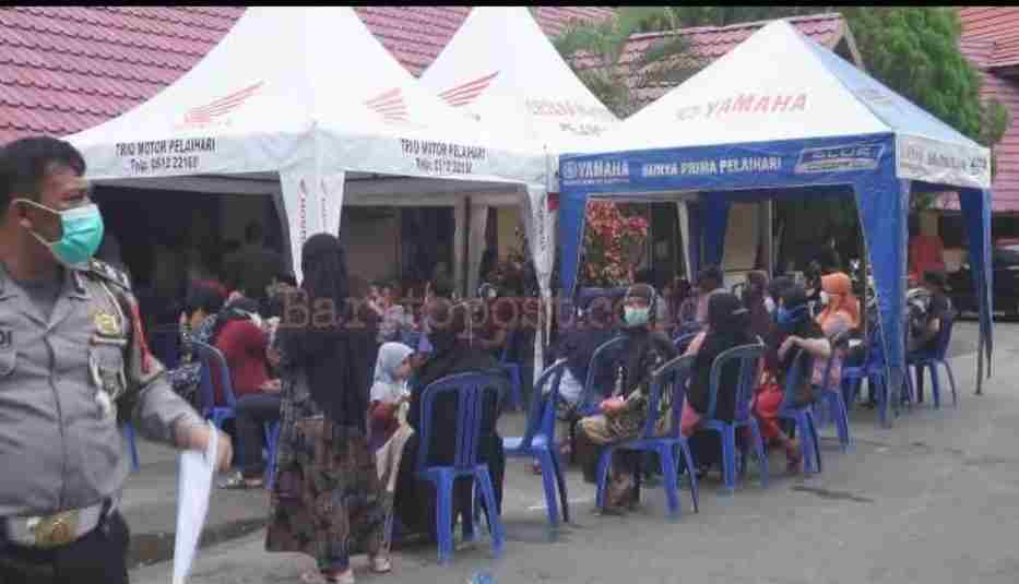 Kegiatan vaksinasi dilakukan didepan kantor Unit Laka Lantas Polres Tala, dimana personil Satlantas saling mendata warga yang divaksin, berikut sebagian menyerahkan hadiah kepada warga setelah divaksin.