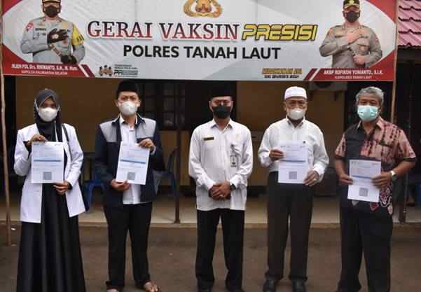 Vaksinasi bekerja sama pula dengan Seksi Kedokteran dan Kesehatan (Sidokkes) Polres Tanah Laut. Ketua FKUB Drs. H. Al Makmun dan beberapa pengurus FKUB Tanah Laut turut hadir dan didampingi anggota Sat Intelkam Polres Tanah Laut.