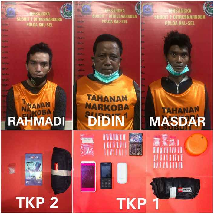 “Total sabu yang disita sebanyak 59 paket sabu dengan berat kotor 21,63 gram (bersih 9,9 gram),” sebut Matsari. Selanjutnya tersangka dan barang bukti dibawa ke Kantor Dit Resnarkoba Polda Kalsel untuk proses lebih lanjut. Sementara atas perbuatannya ketiga tersangka dijerat pasal Pasal 132 ayat (1) Jo Pasal 114 ayat (2) sub Pasal 112 ayat (2) UU RI No.35 Tahun 2009 tentang Narkotika .