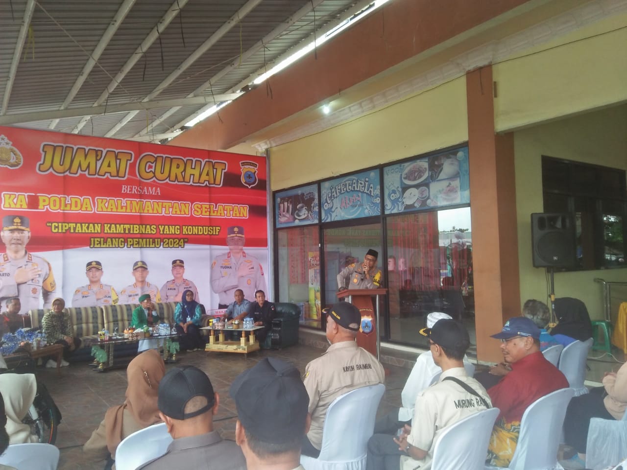 Curhat Jumat itu dipimpin Kapolresta Banjarmasin Kombes Pol Sabana Atmojo Martosumito dan didampingi Wakapolresta AKBP Arwin. Juga dihadiri Ketua KPU setempat Hj Rusnailah dan perwakilan Forkopimkot.