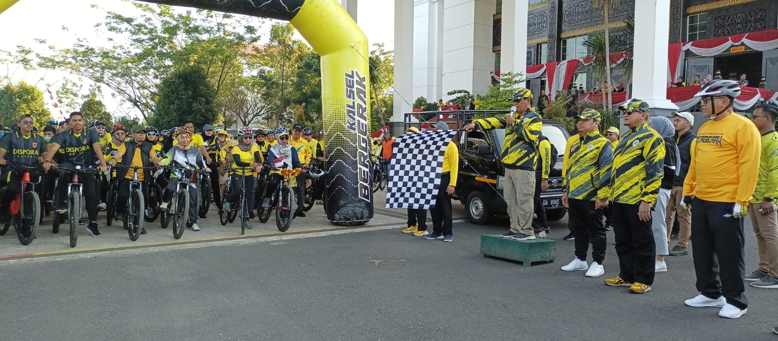Kepala Dispora Kalsel Hermansyah bersyukur dapat kembali mengadakan gowes gembira, dimomen memperingati hari jadi Provinsi Kalsel ke-73 dan HUT RI ke-78.