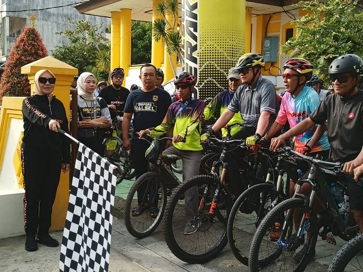 Gowes kali ini dalam rangka welcame to event tahun 2024 yang dilepas Ketua Dharma Wanita Persatuan (DWP) Dispora Kalsel, Rusnawati didampingi Kadispora Kalsel Hermansyah.