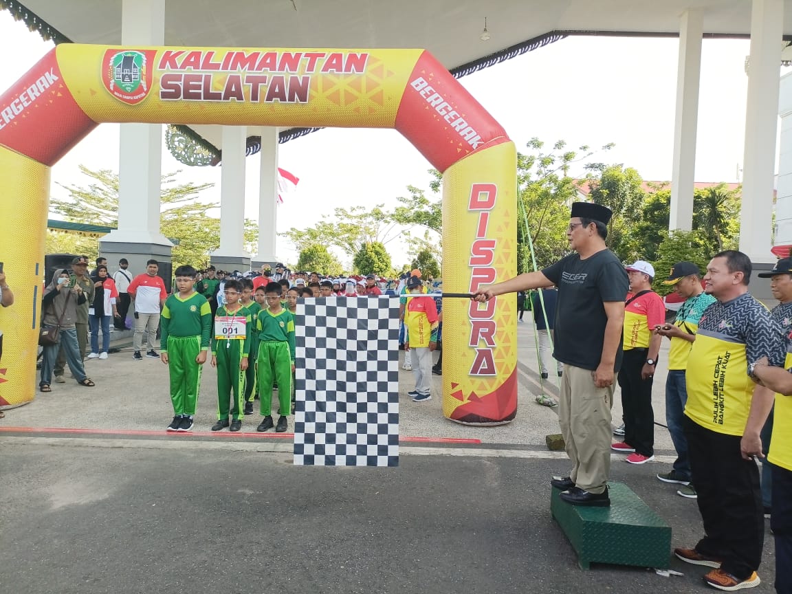 Banjarbaru, BARITO – Gubernur Kalimantan Selatan (Kalsel), H Sahbirin Noor melepas peserta Lomba Gerak Jalan Tingkat SD, SMP dan MTS se-Kalsel dalam rangka Hari Jadi (Harjad) ke-72 Provinsi Kalsel dan HUT ke-77 Kemerdekaan RI, Sabtu (6/8/2022) di Halaman Kantor Setda Kalsel, Banjarbaru.
