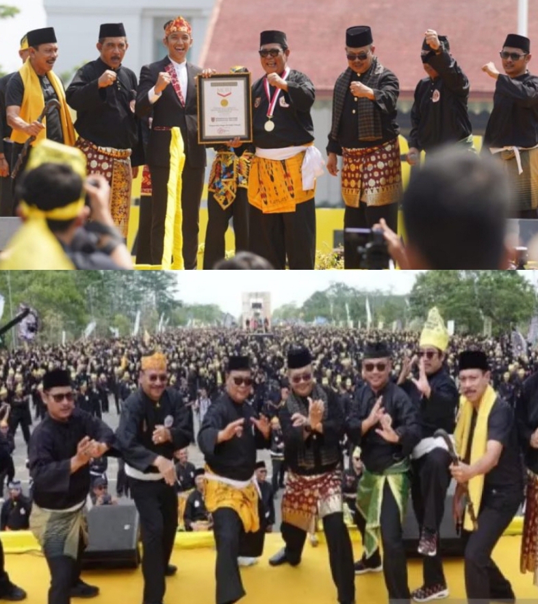 Dengan keberhasilan memecahkan rekor dunia ini, Senior Manager MURI Triyono memberikan piagam MURI yang diterima langsung Gubernur Kalsel H Sahbirin Noor.
