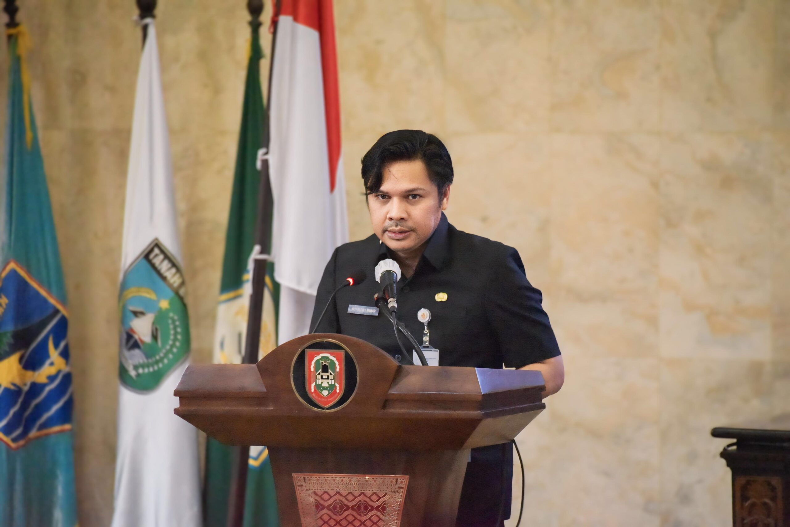 Sekdaprov Kalsel Roy Rizali Anwar mewakili Gubernur Kalsel H Sahbirin Noor membacakan Laporan Keterangan Pertanggungjawaban (LKPj) Kepala Daerah Tahun Anggaran 2023 dalam rapat paripurna DPRD Provinsi Kalsel.(foto : humasdprdkalsel)