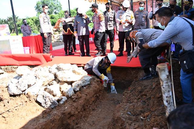 Disela kunjungan kerja Tim Monitoring dan Evaluasi (Monev) Penanganan Covid-19 dan Peninjauan Tempat Karantina Khusus, Kapolda Kalsel Irjen Pol. Dr. Nico Afinta, S.I.K., S.H., M.H. berkesempatan melakukan Peletekan Batu Pertama Pembangunan Gudang Barang Bukti Polres Tabalong.