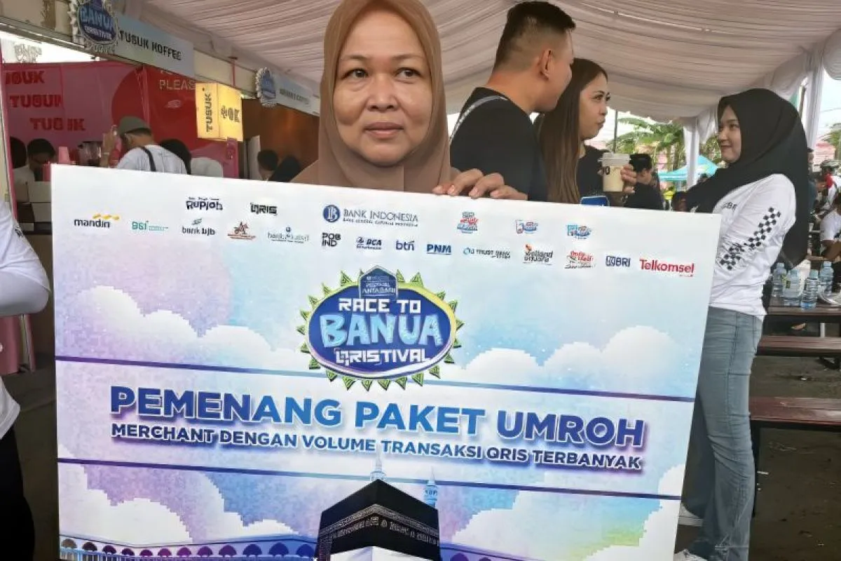 Sri Supianingsih dinobatkan jadi merchant dengan volume transaksi QRIS tertinggi di Kalimantan Selatan pada ajang Banua Qristival 2025, bagian dari rangkaian Festival Antasari yang digelar di Banjarmasin. “Bagi saya, QRIS bukan hanya alat pembayaran, tapi solusi yang mempermudah pelanggan dan membuat transaksi lebih aman serta efisien,” ujar Sri.