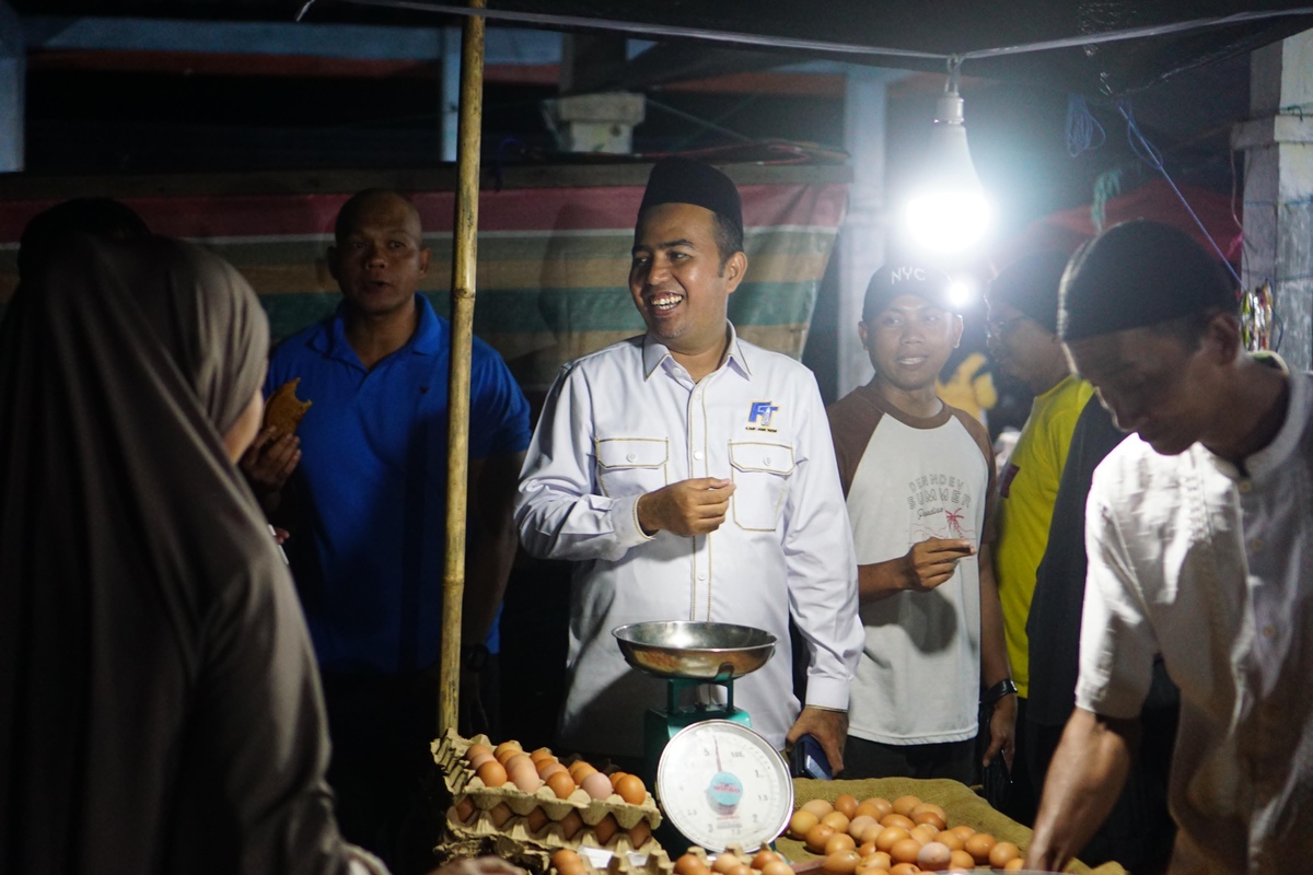 Di Pasar Baru Juin, H. Fani dan Habib Taufan lebih banyak mengajak warga pedagang berbincang.