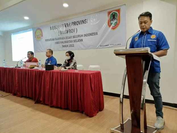 Banjarmasin, BARITO – Berhasil membina atlet biliar Kalsel, H Mustohir Arifin kembali dipercaya menakhodai Persatuan Olahraga Biliar Seluruh Indonesia (POBSI) Banjarmasin Provinsi Kalsel priode 2022-2026. Pria yang biasa disapa Haji Imus tersebut terpilih secara aklamasi pada Musyawarah Provinsi (Musprov), Sabtu (19/2/22) di Hotel 88 Banjarmasin.