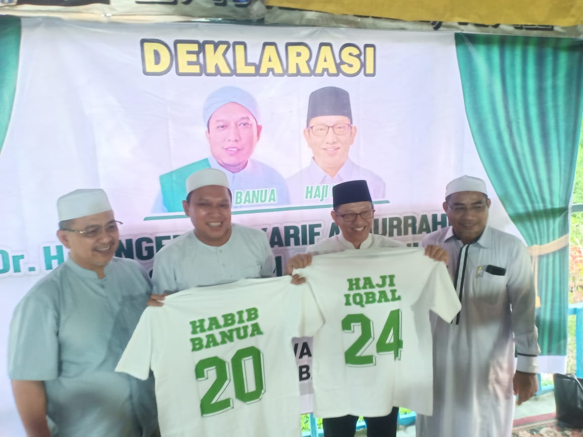 Tampak pula dalam kesempatan tersebut, sejumlah relawan berkumpul dan mendengarkan tausyiah, sekaligus buka puasa bersama usai deklarasi Habib Banua-Haji Iqbal.