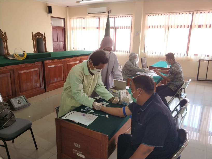 Banjarmasin, BARITO – SETELAH sebelumnya melakukan rapid test hakim, karyawan dan honorer , Senin (18/5/2020) lalu, Pengadilan Negeri / Hubungan Industrial Banjarmasin Kelas 1A kembali menggelar kegiatan yang sama guna mendeteksi sejak dini sekaligus mencegah penyebaran Covid-19