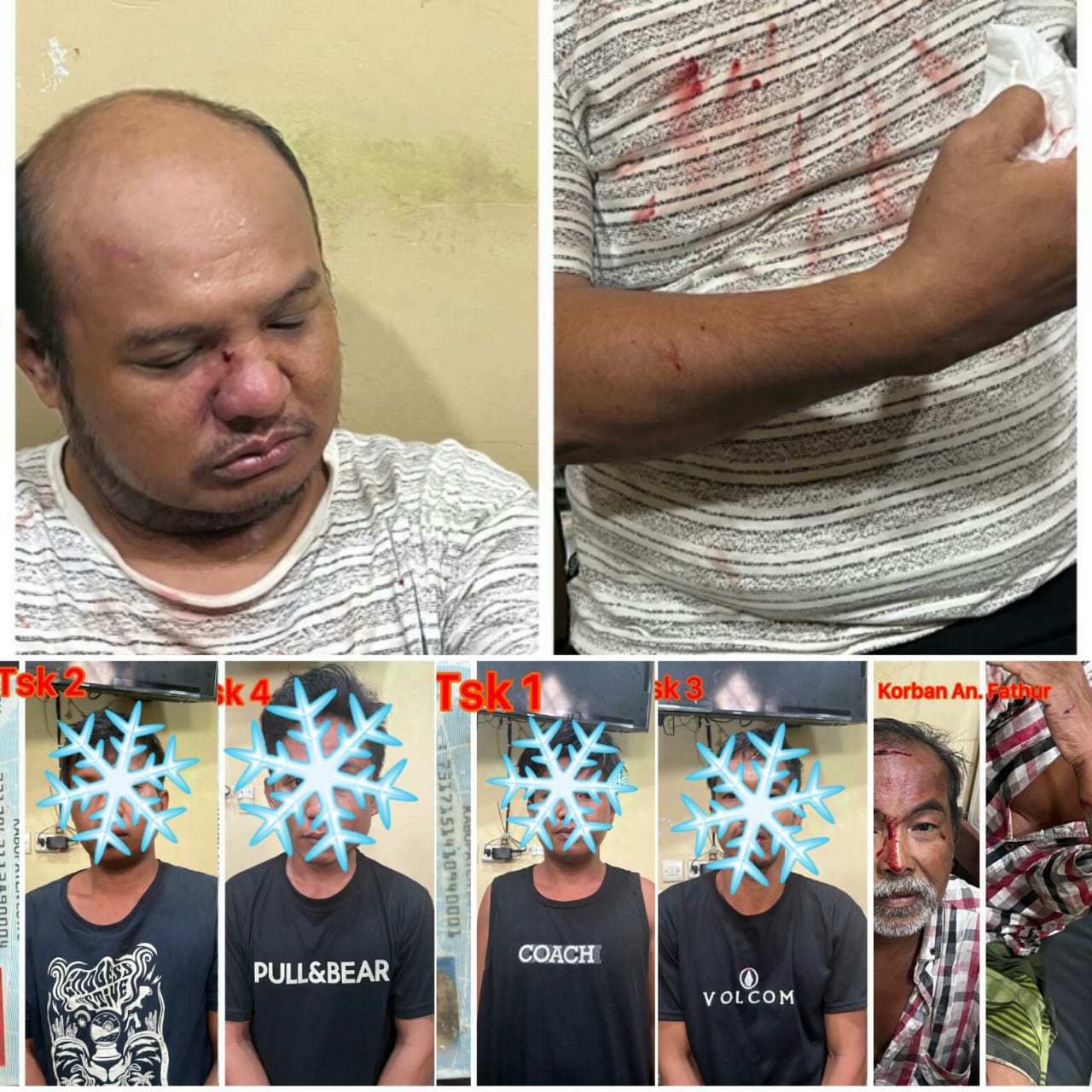 Lalu empat pelaku marah hingga memukuli korban yang seorang diri.