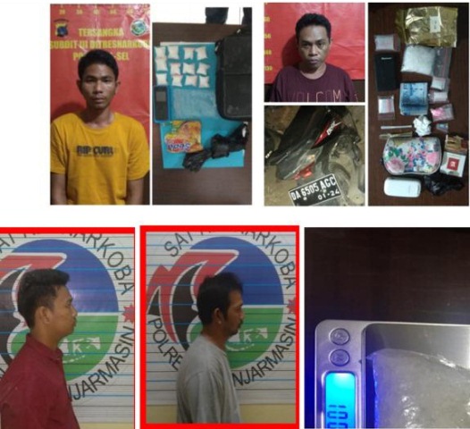 Sementara  S. alias I ditangkap di  Jalan Teluk Tiram Darat Gang. ABC Rt. 131 Rw. 01 Kelurahan. Telawang Kecamatan. Banjarmasin Barat Kota Banjarmasin, Jumat (5/7/2019) sekitar pukul 18.00 wita. S disergap saat melintas dengan kendaraannya setelah dilakukan penyelidikan sebelumnya berdasarkan informasi masyarakat tersangka diduga melakukan peredaran barang gelap narkotika”Saat diperiksa anggota kami dibawah jok motor tersangka berhasil ditemukan empat paket sabu seberat 54,59 gram dan 17 butir pil ekstasi” tambah Sigit Kumoro.