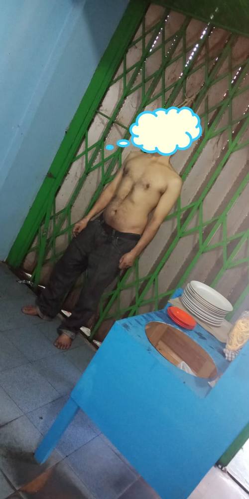 Sang istri shock menemukan korban sudah dalam keadaan tergantung di pintu roling door Ruko. “Kondisi korban lidahnya menjulur dan kaki menempel di lantai ruko,”bebernya.