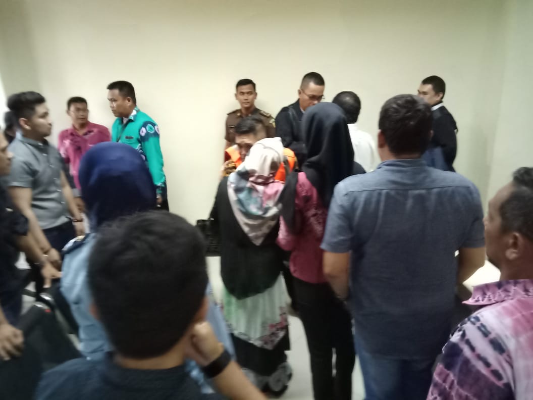 Usai sidang, kedua orang tua terdakwa yang turut mendengarkan vonis majelis hakim nampak haru dan langsung memeluk putranya tersebut.