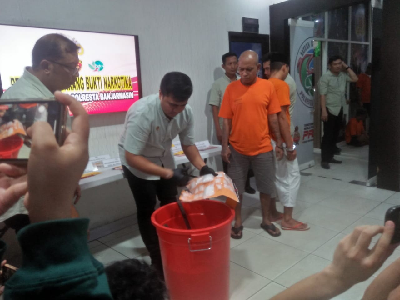 Dalam pemusnahan Sabu-sabu tersebut dilakukan dengan cara dilarutkan ke dalam air diterjen, selanjutnya dibuang ke selokan. Giat itu dihadiri perwakilan Pengadilan Negeri Kota Banjarmasin, Perwakilan Kejaksaan Negeri, BNN Kota, dan Perwakilan LKBH Kota setempat.