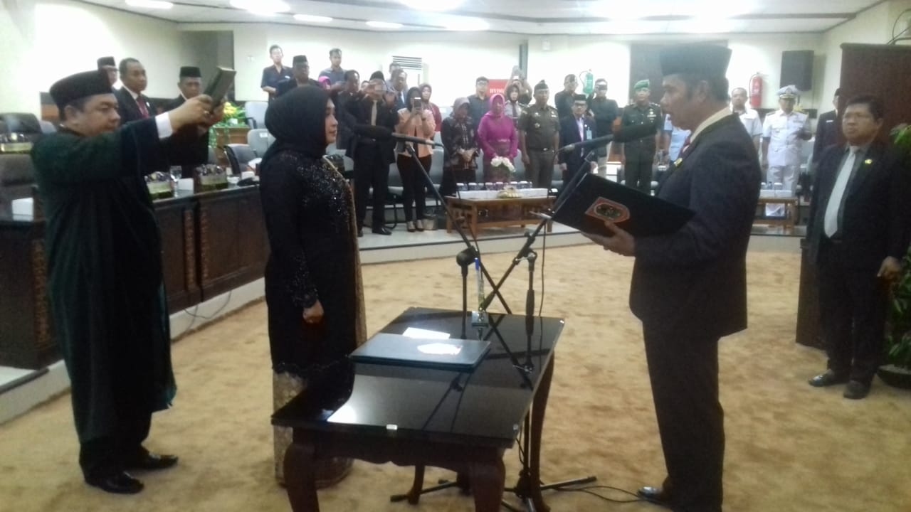 Hj Farah Amalia, ST dari Partai Hati Nurani Rakyat (Hanura) Pengganti Antar Waktu (PAW) anggota DPRD Provinsi Kalimantan Selatan untuk sisa masa jabatan 2014-2019, Kamis (10/1/2019) dilantik dan diambil sumpah janji.