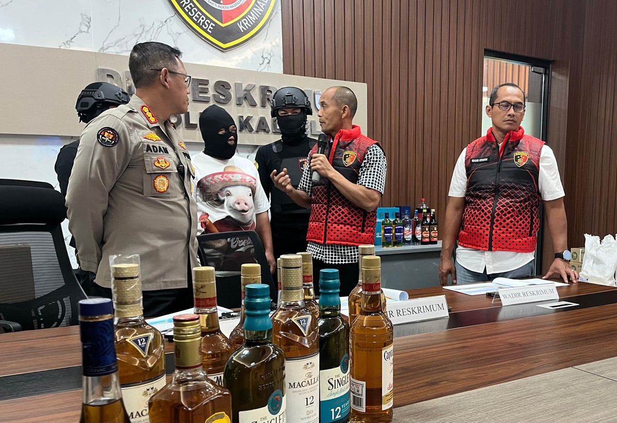 Dalam press release, Dirreskrimum Polda Kalsel, Kombes Pol Frido Situmorang, didampingi Kabid Humas Kombes Pol Adam Erwindi dan Wadir Reskrimum AKBP Diaz Sasongko, memaparkan barang bukti ratusan botol miras berbagai merek yang dipalsukan.