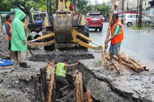 Banjarmasin, BARITO – Hujan yang berlangsung lama mengguyur Kota Banjarmasin memaksa tim perbaikan pipa dari PDAM Bandarmasih menghentikan pekerjaannya.