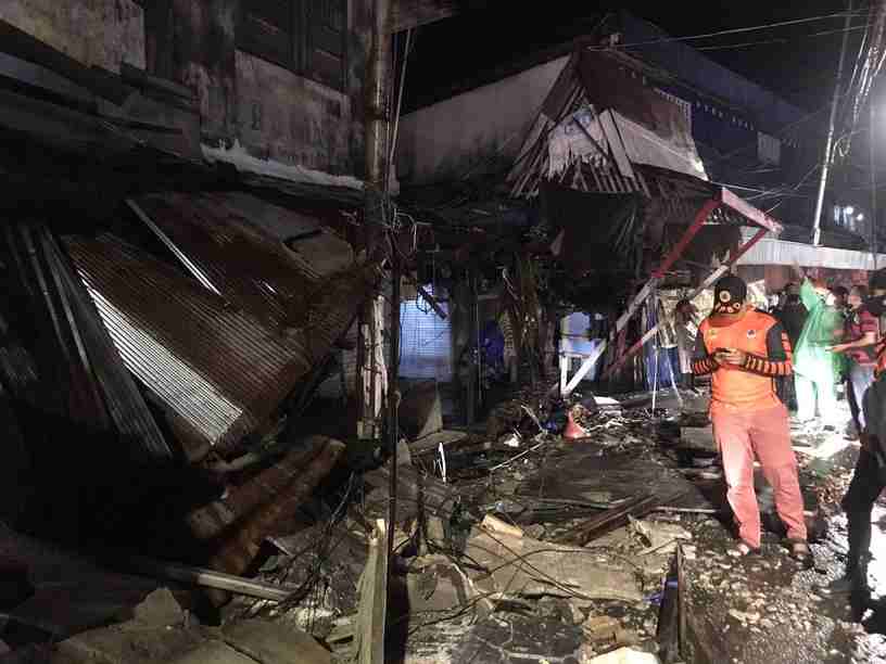 Dari informasi yang dihimpun, kejadian ini tidak sampai memakan korban jiwa. Hanya saja, menimpa sebuah motor jenis matic dan merusak 4 buah toko dilantai 1, dan 1 buah gudang dilantai 2.