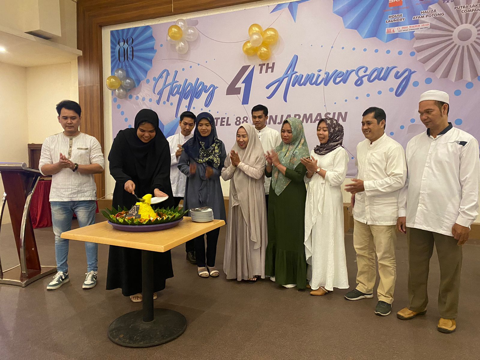 GM Hotel 88 Banjarmasin, memotong nasi tumpeng di hari perayaan HUT Hotel 88 yang ke-4, Sabtu (10/2/2024)