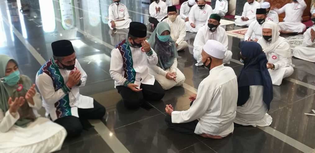 Pasangan petahana bermotto ‘Baiman’ ini sebelum medaftar terlebih dulu melakukan salat dhuha dan doa bersama pemuka agama Banjarmasin.