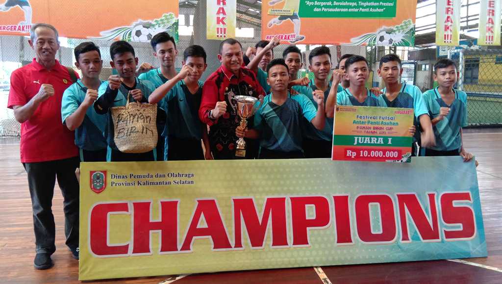 Banjarmasin, BARITO – Mampu mengalahkan juara bertahan di final, Panti Asuhan Ibnul Amin Barabai, Hulu Sungai Tengah (HST) menjadi kampiun baru pada Festival Futsal Antar Panti Asuhan se Kalsel 2019 yang berakhir, Kamis (11/7) di Suria Futsal Banjarmasin.
