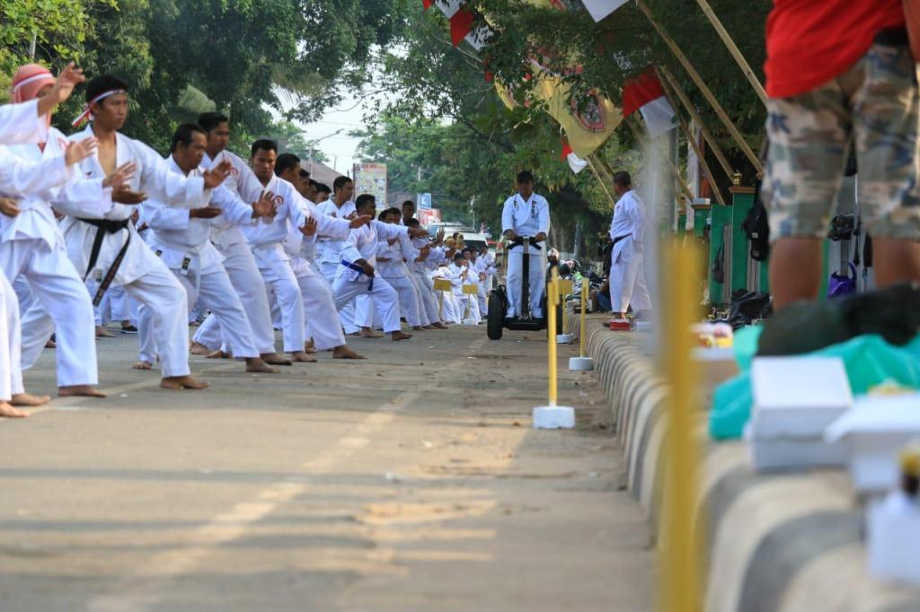 Tidak ketinggalan, Sekdaprov Kalsel, Drs H Abdul Haris,MSi yang juga karateka bersabuk biru, turut bergabung bersama  di sepanjang jalan Siring 0 Km Banjarmasin.