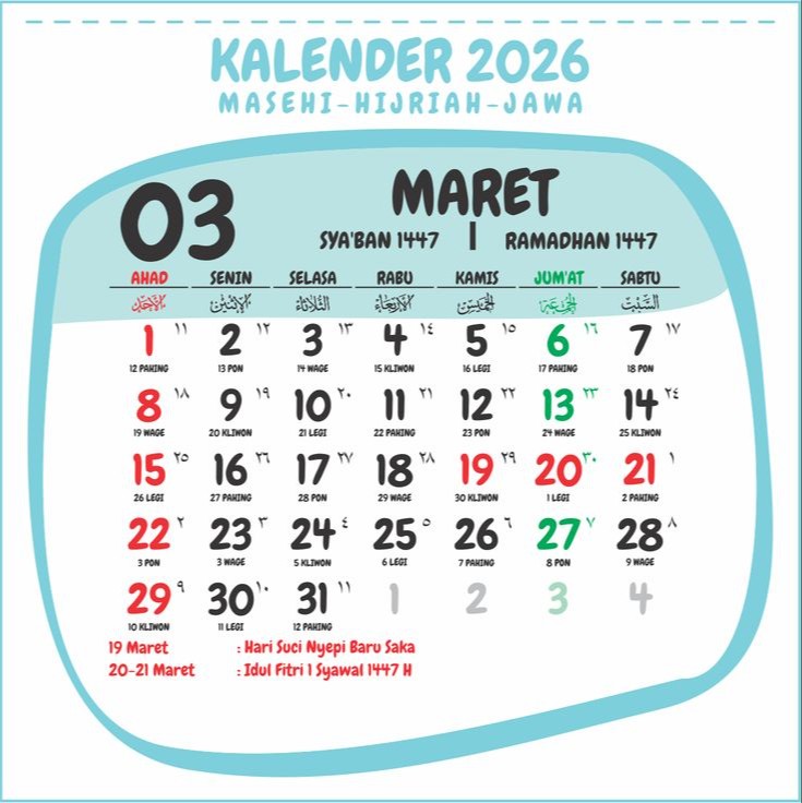 BARITOPOST.CO.ID – Berdasarkan kalender Maret 2026 di atas, terlihat jelas bahwa minggu ketiga menjadi pusat utama dari seluruh kegiatan peliburan. Rentetan keterangan yang ada memberikan sinyal bagi pekerja maupun instansi untuk segera menyesuaikan ritme kerja harian.