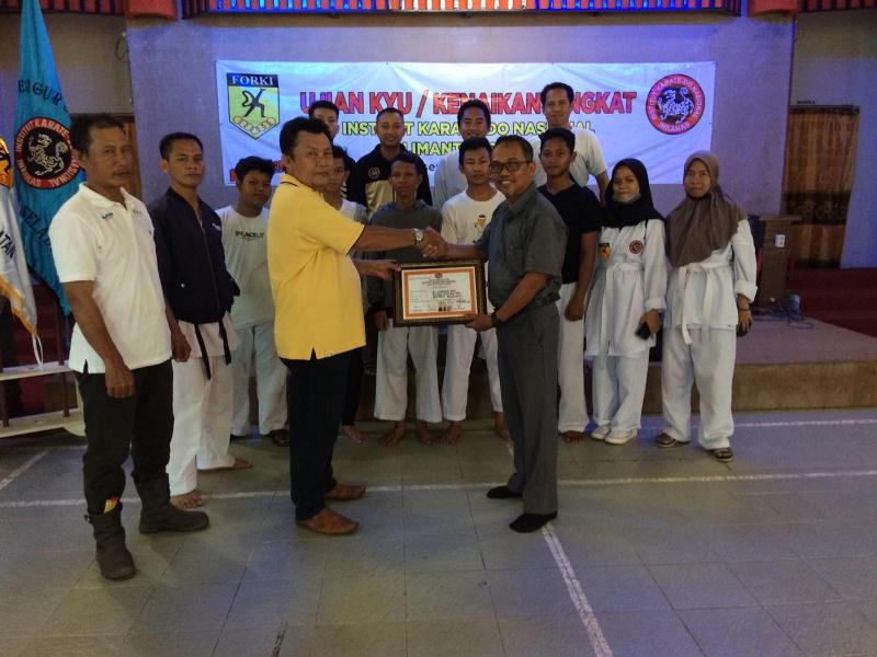 Dalam ujian karate kali ini, tim penguji serta Majelis Sabuk Hitam (MSH) Perguruan Inkanas, memberikan secara simbolis sertifikat kepada Kepala Sekolah SMU PGRI 6 Banjarmasin, Drs Ahdianor MPd.