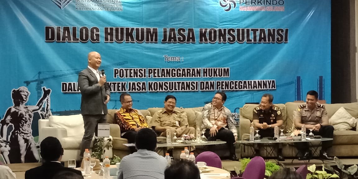 Banjarmasin, BARITO – Dialog Hukum Jasa Konsultasi bertema Potensi Pelnggaran Hukum dalam Praktik Jasa Konsultasi dan Pencegahannya digelar Ikatan Nasional Konsultan Indonesia (Inkindo) Kalsel dan Persatuan Konsultan Indonesia (Perkindo) di Hotel Mercure Banjarmasin, Selasa (30/7).