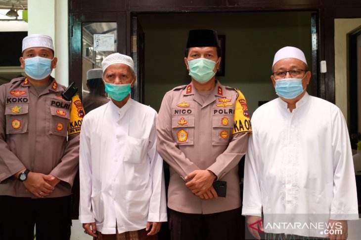 Didampingi Kapolres Banjar AKBP Andri Koko Prabowo, Nico mengunjungi Imam Mushala Ar-Raudah Sekumpul Guru H Sadudin Salman dan Guru KH Wildan Salman di Madrasah Darussalam Tahfidz dan Ilmu Al Quran.