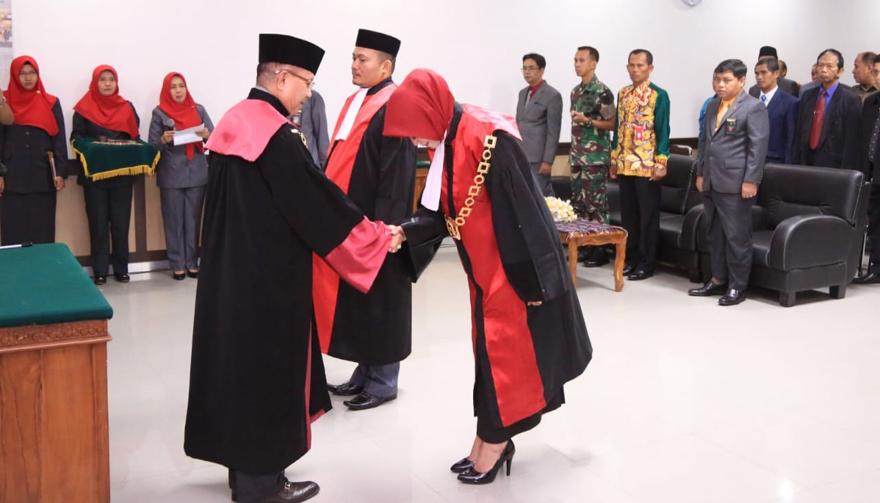 Pelaihari, BARITO-Pada sidang luar biasa pengambilan sumpah jabatan dan pelantikan Ketua Pengadilan Negeri (PN) Pelaihari dan serah terima jabatan Ketua PN Pelaihari di Kantor Pengadilan Tinggi Banjarmasin Kota Banjarbaru, Jumat (31/5/2019).