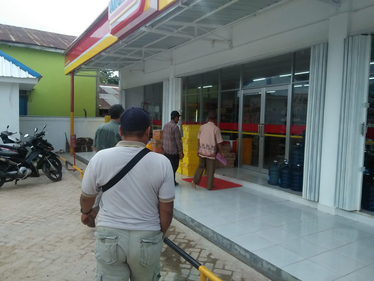 Toko modern Alfamart yang masih dipertanyakan izinnya, sudah melayani pembeli secara terang terangan yang sebelumnya masih sembunyi sembunyi. (zainal/brt).