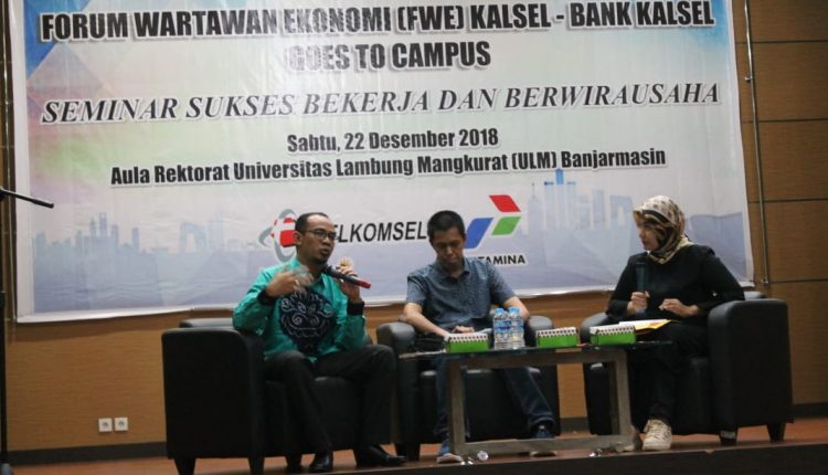 “Merencanakan sejak awal menjadi seorang pengusaha artinya kita harus fokus untuk menjadi seorang pengusaha saja, jangan pernah berpikir lagi untuk menjadi seorang pegawai,” tegasnya, disela kegiatan Forum Wartawan Ekonomi (FWE) Kalsel – Bank Kalsel Goes To Campus “Seminar Sukses Bekerja dan Berwirausaha,” Sabtu (22/12) di Aula Rektorat Universitas Lambung Mangkurat (ULM) Banjarmasin.