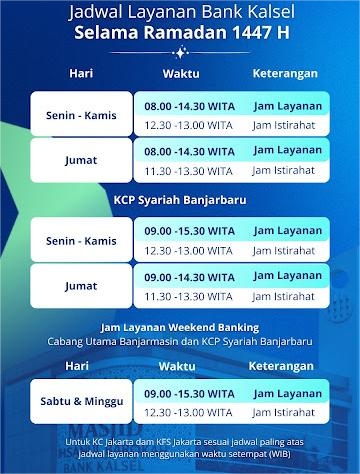 Jadwal Layanan Bank Kalsel Selama Ramadan 1447 Hijriah