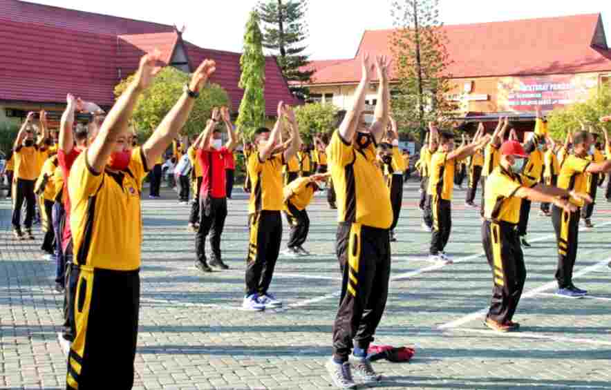 Banjarmasin, BARITO – Upaya menjaga kesehatan dan meningkatkan imun tubuh ditengah pandemi covid-19, Polda Kalsel melaksanakan olahraga bersama di lapangan Apel, Jum’at (28/5/2021).