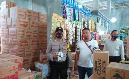 Polda Kalsel, dalam rangka mengantisipasi kenaikan harga bahan pokok pangan (sembako), Kanit Reskrim bersama anggota Bripka Taufik bersama Bripka Arif Sujarwadi melaksanakan giat patroli ke toko sembako desa Manunggal guna melakukan pengecekan ketersediaan dan stabilitas harga bahan pokok pangan khususnya di wilayah Kecamatan Karang Bintang, Kamis (17/09/2020).