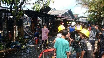 Sementara rumah yang bertingkat Darsono (55) atapnya terbakar, sedangkan rumah Azis dijilat api bagian dapur. .