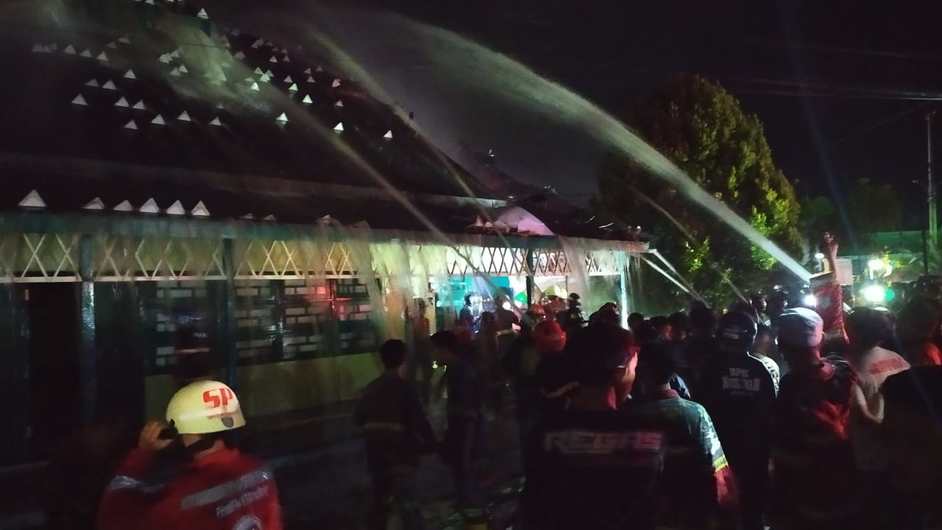 Banjarmasin, BARITO – Warga Sungai Jingah digegerkan dengan kebakaran di satu bangunan enam pintu di Masjid Jami, Kelurahan Sungai Jingah, Kecamatan Banjarmasin Utara, Rabu (13/1/2021) dinihari pukul 01.15 Wita. Api yang berasal dari ruang sekretariat angkatan muda masjid itu langsung dikeroyok puluhan pemadam kebakaran (damkar).