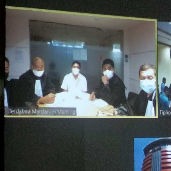 Dari layar, nampak Mardani kelihatan tenang mendengarkan pembacaan surat dakwaan yang dibacakan secara bergiliran oleh JPU dari KPK RI.