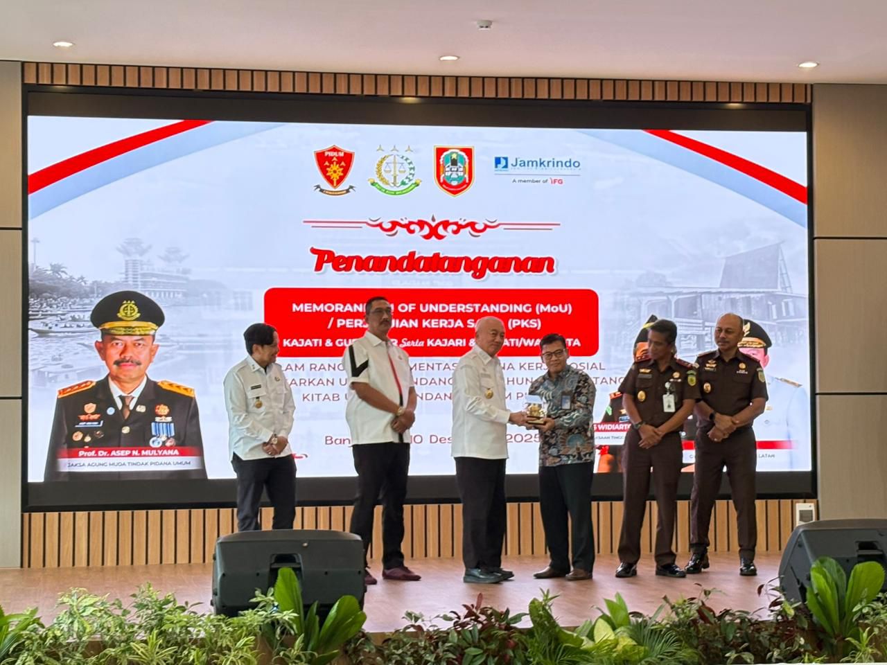 Dukungan Jamkrindo dalam pengembangan sumber daya manusia pada program keadilan restoratif tertuang dalam Penandatanganan Nota Kesepahaman antara Kejaksaan Tinggi Kalimantan Selatan dengan Pemerintah Provinsi Kalimantan Selatan serta Penandatanganan Kerja Sama antara Kejaksaan Negeri se-Kalimantan Selatan dengan Pemerintah Kabupaten/Kota se-Kalimantan Selatan pada Rabu (10/12/2025) di Banjarmasin.