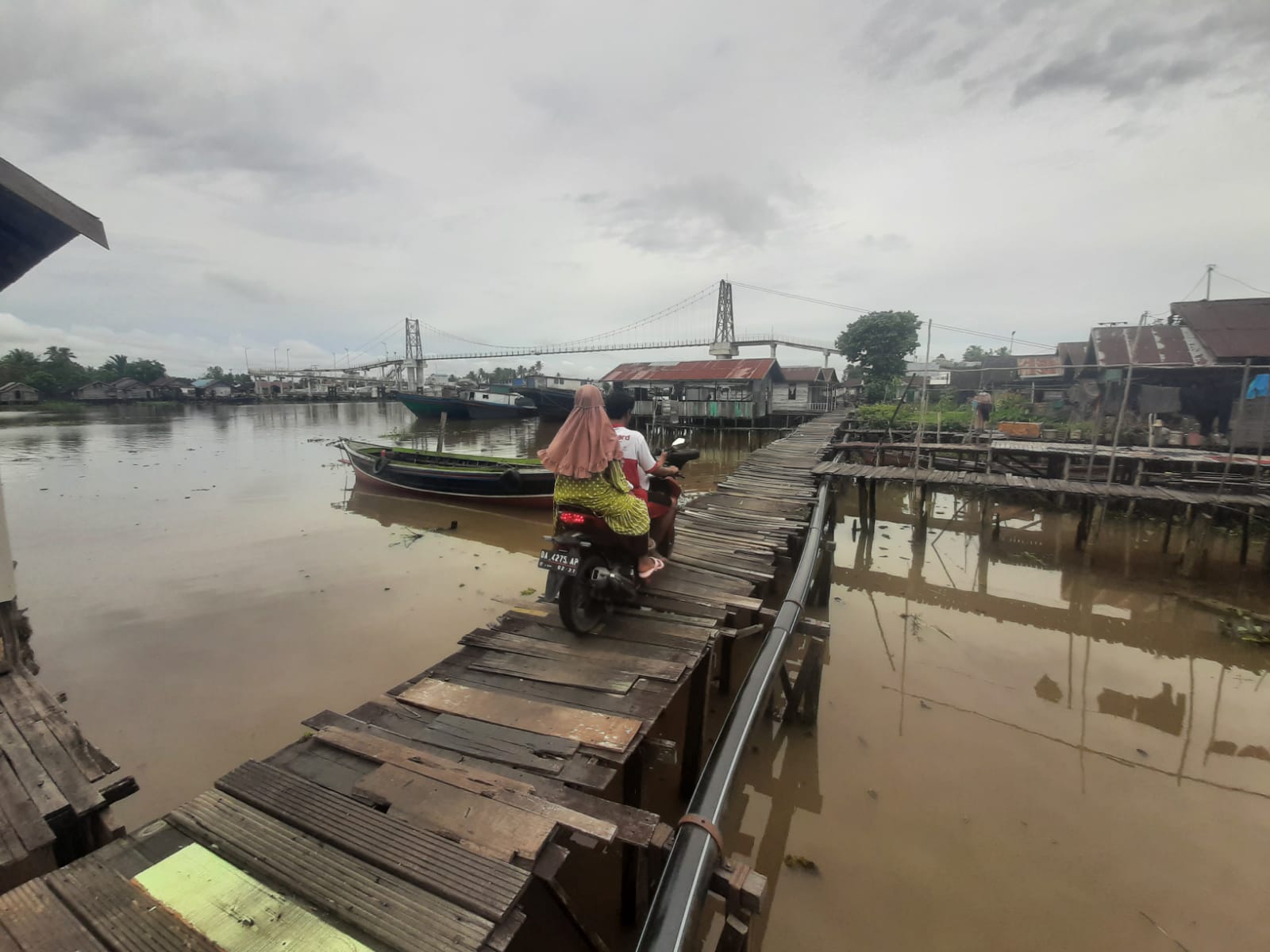 Kata warga, belum lama tadi ada seorang penjaja es krim terjungkal di titian itu dan sempat viral di medsos. Beruntung tidak berakibat cedera serius atas insiden tersebut.