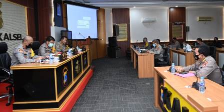 Kepala Kepolisian Daerah Kalimantan Selatan (Kapolda Kalsel) Irjen Pol. Dr. Nico Afinta, S.I.K., S.H., M.H. didampingi Wakapolda Kalsel Brigjen Pol. Mohamad Agung Budijono, S.I.K., M.Si, dan Irwasda Polda Kalsel Kombes Pol. Dr. Heri Armanto Sutikno, S.H., M.Si. memimpin Rapat Koordinasi Kesiapan Kunjungan Kerja Komisi lll DPR RI ke Polda Kalsel, Jumat (9/10/2020) pukul 11.00 Wita.