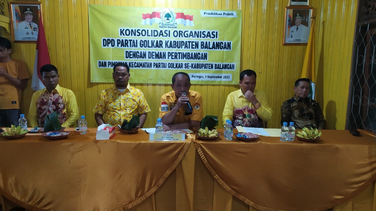 Hal ini disampaikan Plt Ketua DPD Partai Golkar Kabupaten Balangan, H Puar Junaidi, S.Sos, SH, MH saat melaksanakan konsolidasi di Kabupaten Balangan, Kamis (8/9/2022).