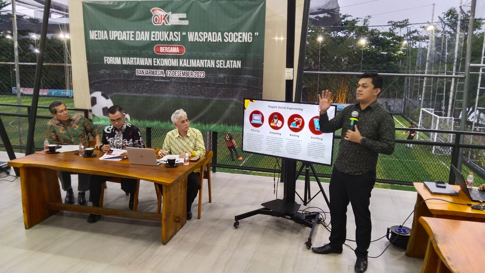 “Kondisi saat ini cukup marak Social Engineering (soceng). Soceng atau rekayasa sosial merupakan modus kejahatan yang memanipulasi psikologis korban dan memanfaatkan human error untuk mendapatkan informasi pribadi yang kemudian digunakan untuk tindak kejahatan,” ucap Darmansyah, Selasa (12/12/2023) dalam pertemuan bulanan bersama jurnalis di Kota Banjarmasin.