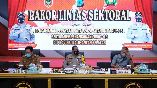 Selain melaksanakan Rakor Lintas Sektoral Pengamanan Natal 2020 dan Tahun Baru 2021, dalam kegiatan tersebut juga berlangsung Anev Penanganan Covid-19 wilayah Kalimantan Selatan.