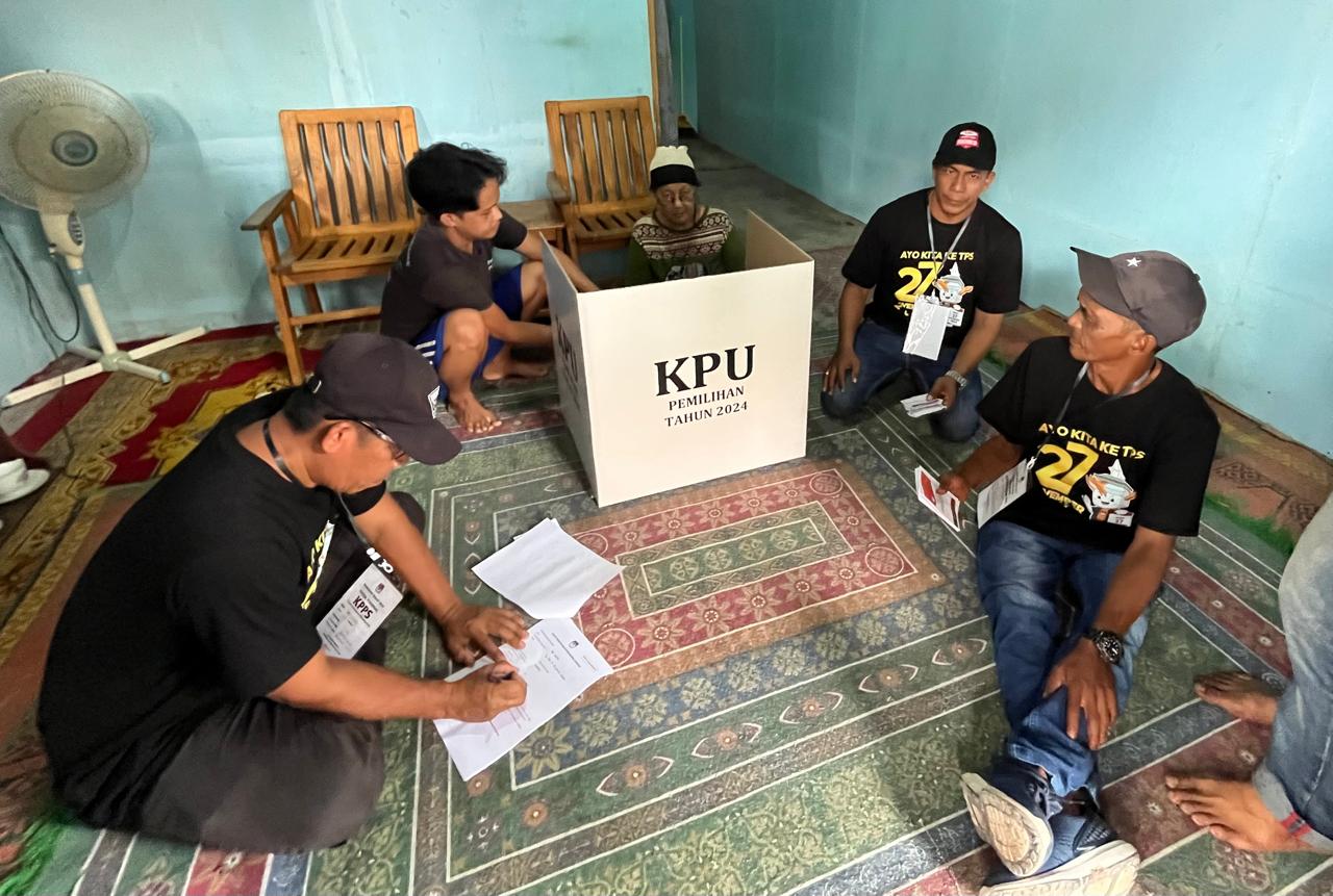 Ketua Kelompok Penyelenggara Pemungutan Suara (KPPS) bersama anggota didampingi Ketua RT setempat harus door to door mendatangi 9 warganya yang difabel dan sakit dengan membawa surat suara, bilik suara dan perlengkapan mencoblos lainnya.
