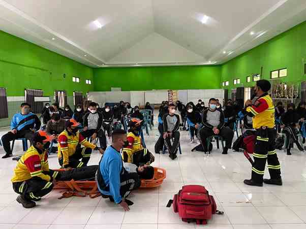 Sosialisasi P3K dan praktek penanganan korban dibekali langsung oleh team Jhonlin Fire Rescue.